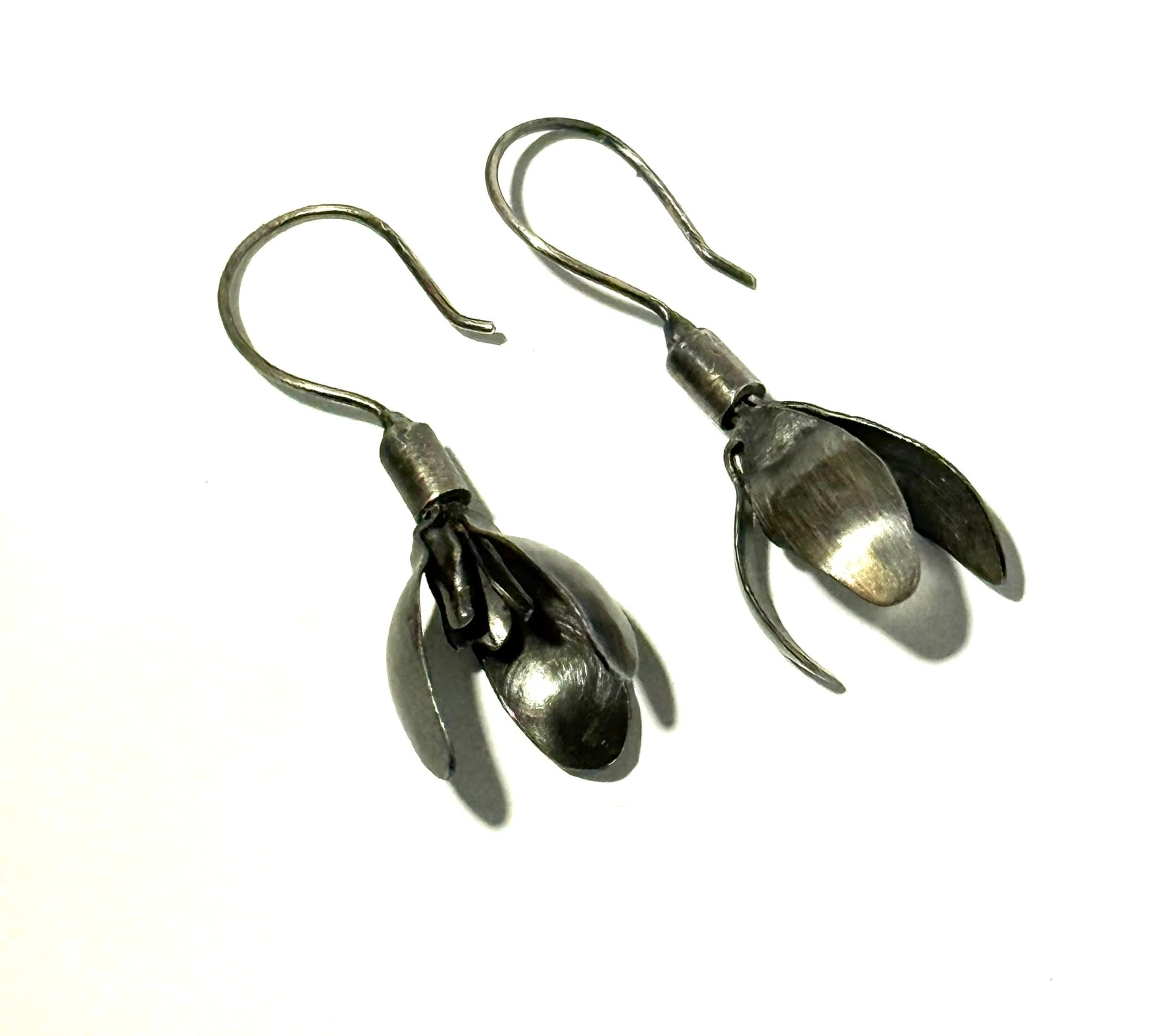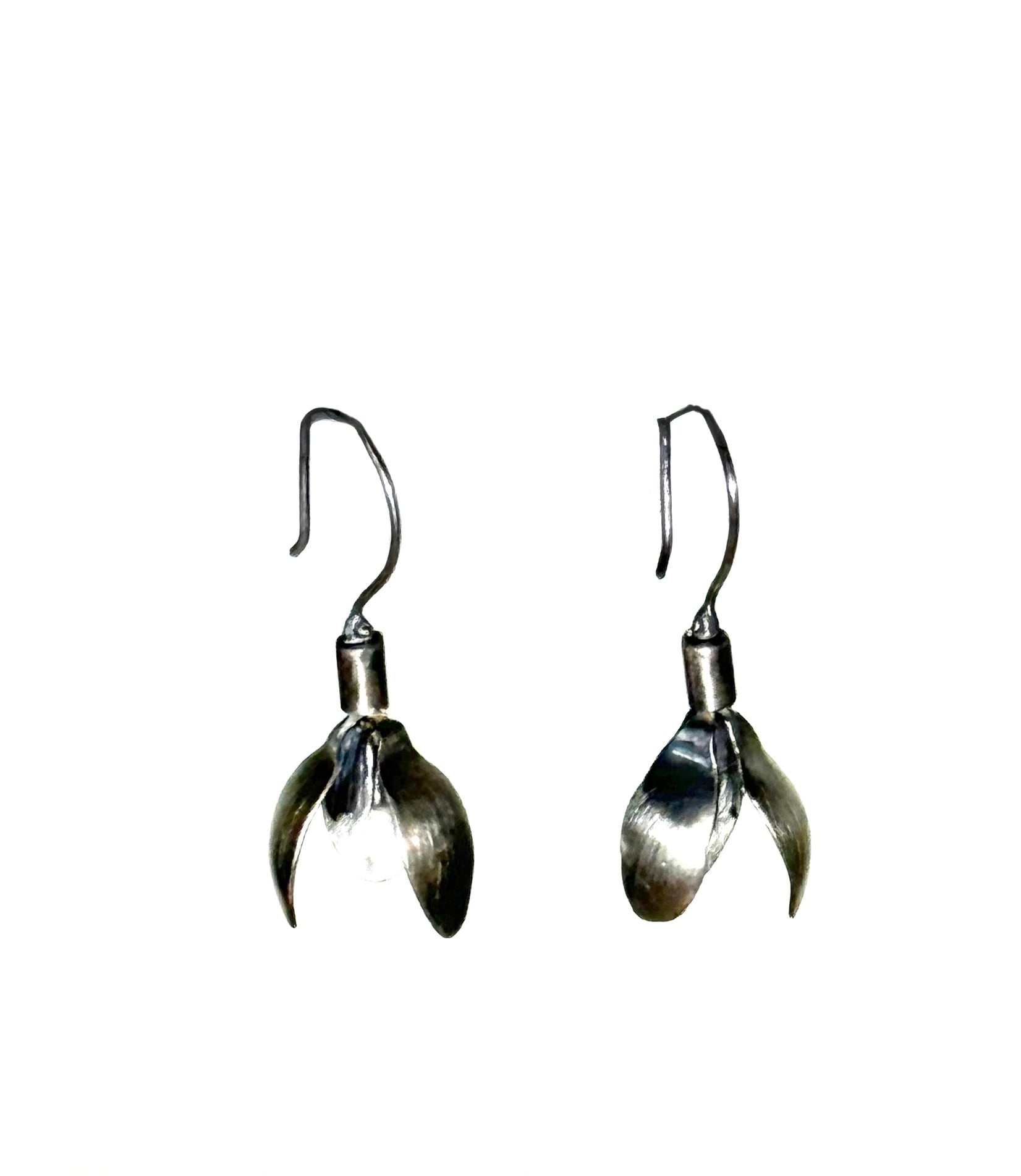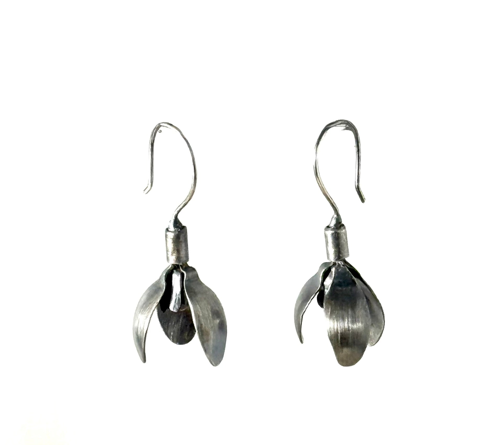 Sterling silver Snowdrops beginning to open, these handmade silver earrings capture the quiet beauty of a garden moment — soft, organic, and full of life.